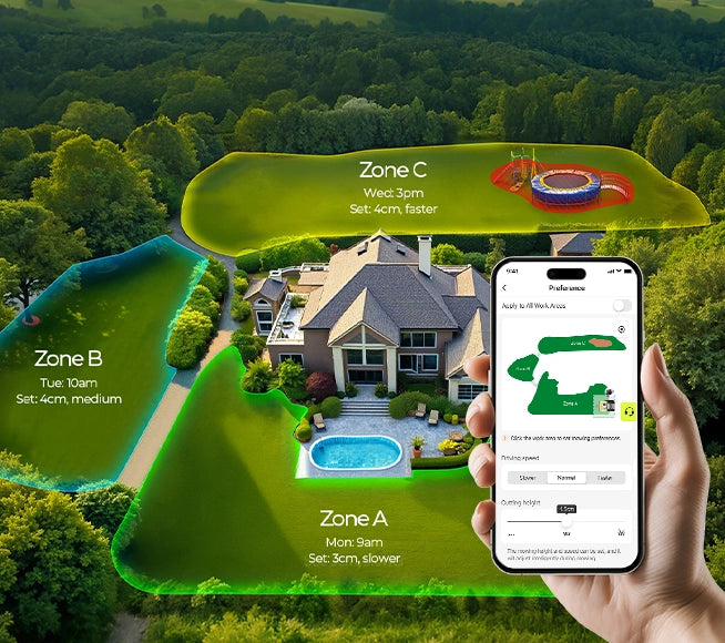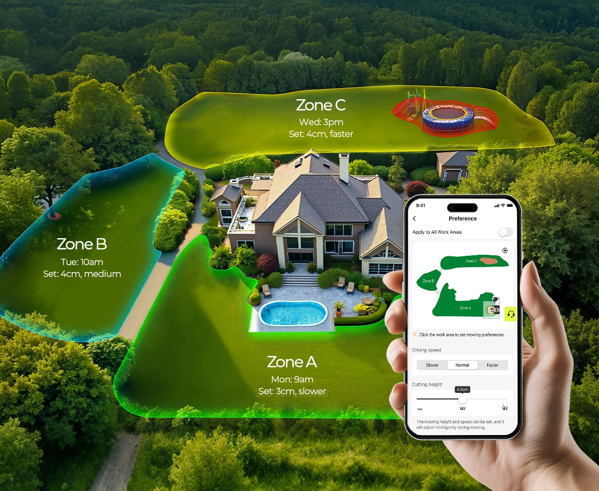 Note: The device supports ≤15 work areas and ≤12 no-go zones. Adjust zones as needed for optimal navigation.